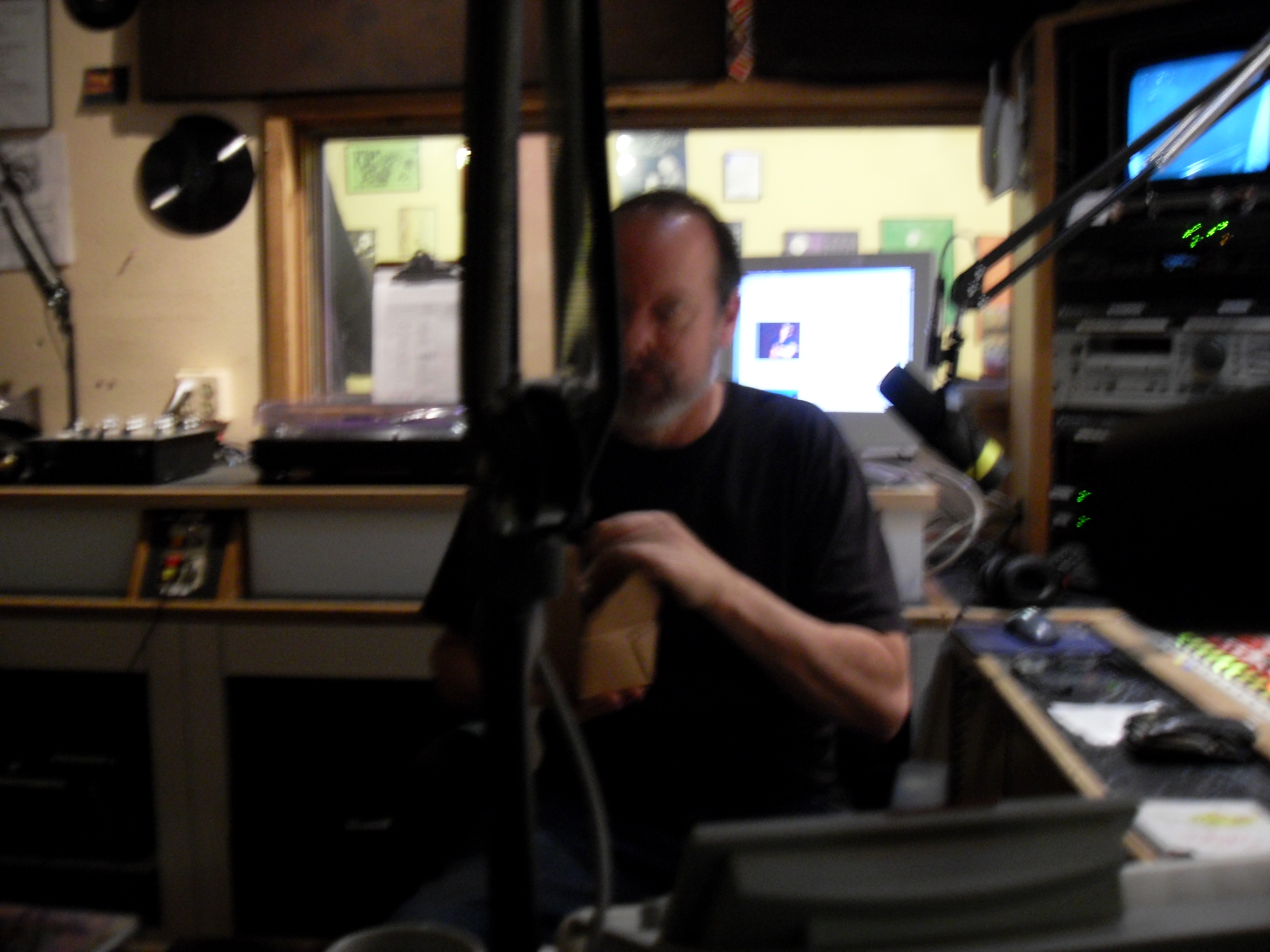 So here are some pictures from the KBOO studio in the middle of the night.